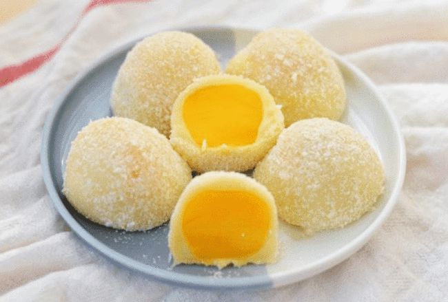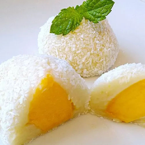 材料:糯米粉、芒果、牛奶、生(shēng)粉、白(bái)砂糖、椰蓉