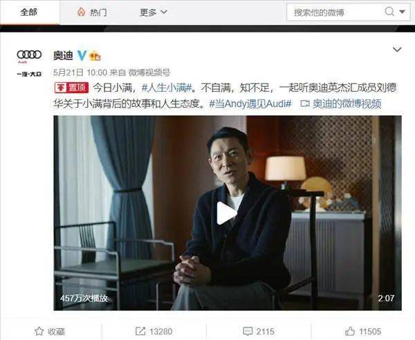 5月21日,小(xiǎo)滿,這一(yī)天奧迪汽車(chē)發布了由著名4A廣告公司制作出品“小(xiǎo)滿”廣告,劉德華在廣告中(zhōng)圍繞小(xiǎo)滿節氣講了一(yī)番人生(shēng)哲學:“有小(xiǎo)暑一(yī)定有大(dà)暑,有小(xiǎo)寒一(yī)定有大(dà)寒,但是小(xiǎo)滿一(yī)定沒有大(dà)滿,因爲大(dà)滿不符合我(wǒ)(wǒ)們古人的智慧……小(xiǎo)花未全開(kāi)月未圓,半山微醉盡餘歡,何須多慮盈虧事,終歸小(xiǎo)滿勝萬全......”很快視頻(pín)的文案帶來了轟動性效應,該視頻(pín)沖上熱搜,全網播放(fàng)量破億,引起了很高的關注度。