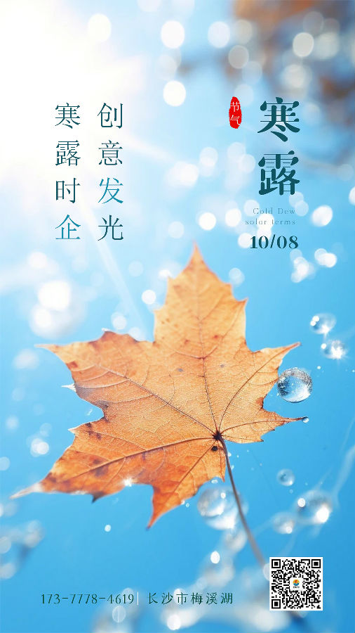 “葉落楓紅漸冷天,降臨寒露覺衣單。”季節匆匆,歲月輪轉,袅袅西風吹過雁,人間已是寒露天。伴随着寒露而至的濃濃秋意,荷殘蟬噤層林盡染,雜(zá)樹(shù)蕭疏夜涼如水。寒露時節,湖南(nán)企發文化願您心懷溫暖,勇敢而堅韌,溫柔而堅定。