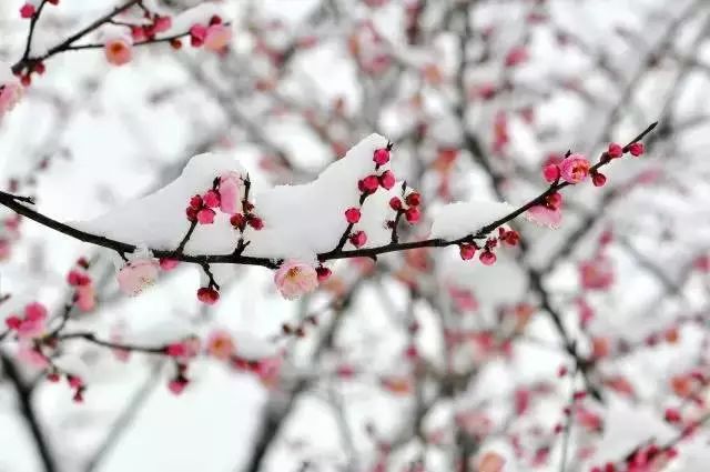 白(bái)雪下(xià)有紅梅,紅梅上有白(bái)雪,間有花蕊送過陣陣淡淡的清香來。真可謂“梅須遜雪三分(fēn)白(bái),雪卻輸梅一(yī)段香。”雪襯了梅,梅襯了雪。紅梅白(bái)雪搭配在一(yī)起,高雅清奇,自有一(yī)番脫俗淩雲的味道。“雪似梅花,梅花似雪,似與不似都奇絕。”